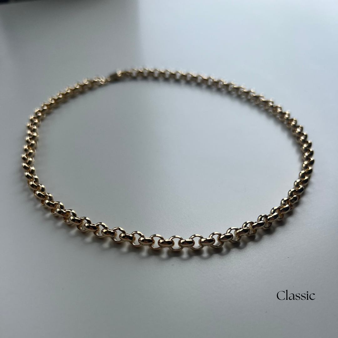 Timeless, everyday elegance. Elevate your look with the understated beauty of our Belcher Chokers. Designed to sit gracefully at the neckline, these classic chains offer the perfect blend of simplicity and sophistication.