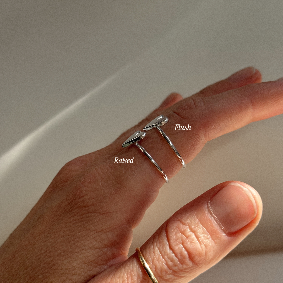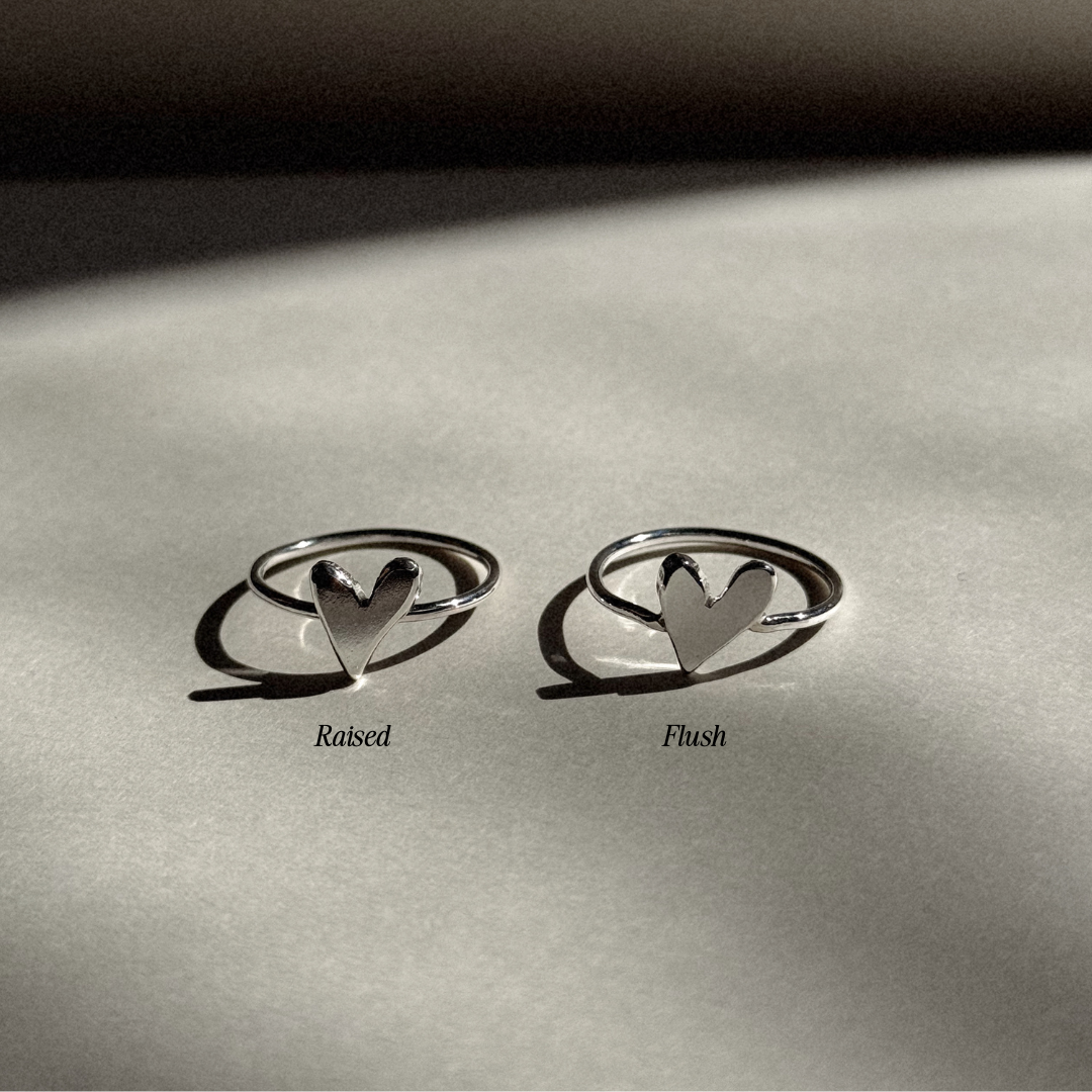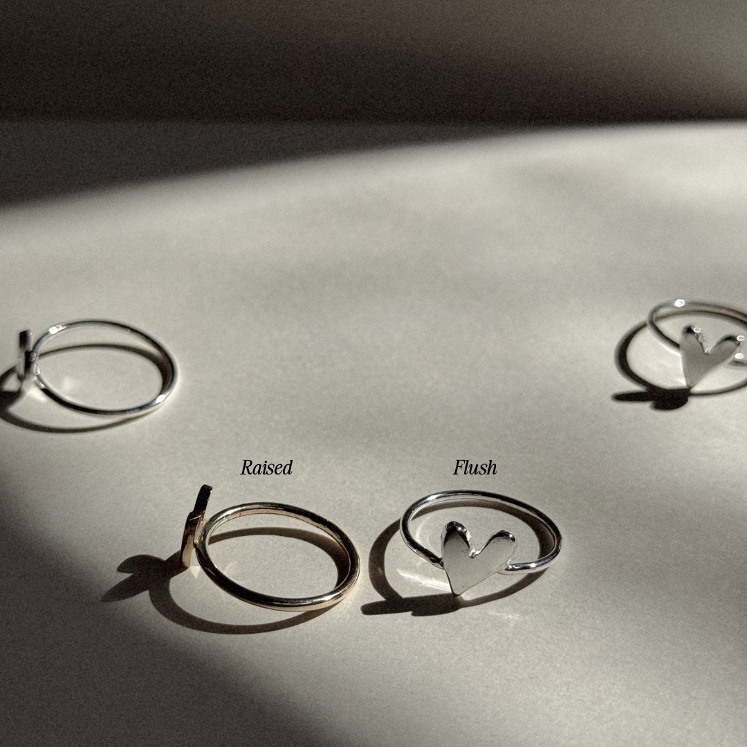 Decide how your heart sits. Keep it raised above the band for a classic look that stacks beautifully, or choose a flush style for a more subtle, seamless finish.