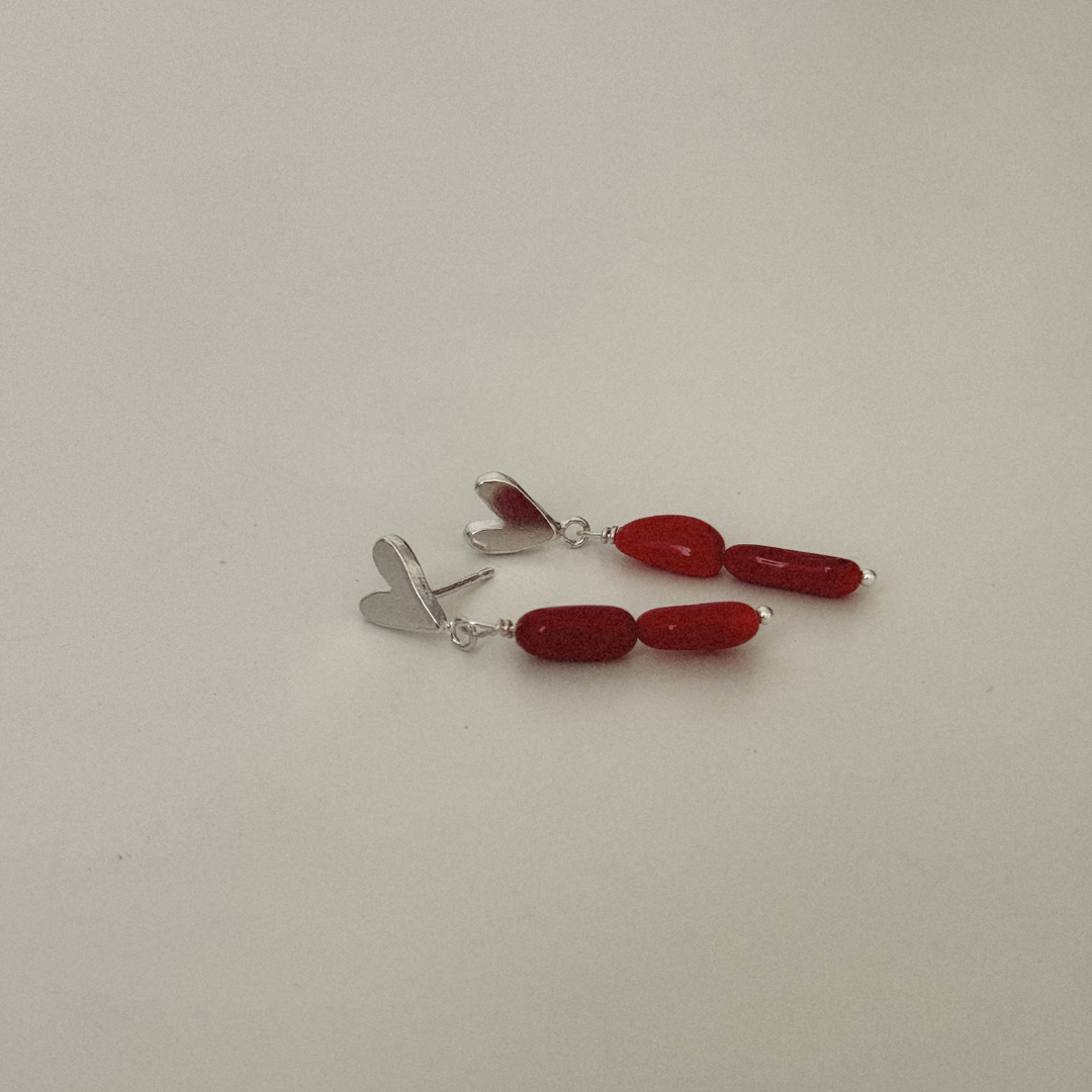 A delicate take on our signature Darling Heart. These petite sterling silver studs are finished with your choice of charm: a vibrant red bead for a playful pop of summer colour or an organic baroque pearl for natural elegance.