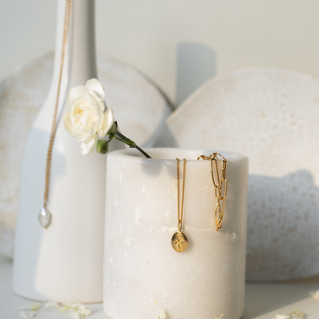 The In Bloom Birthflower Collection is delicately handmade from recycled Sterling Silver, finished with a luxurious 4-micron thick layer of 18ct Gold Vermeil.