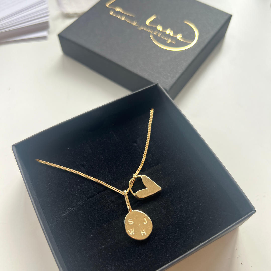 Two of our most loved pendants now together on one chain, the Initial Pendant and the Darling Heart. A meaningful duo designed to hold your most cherished memories close.