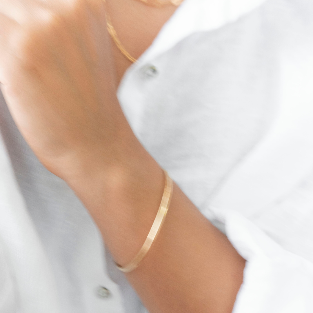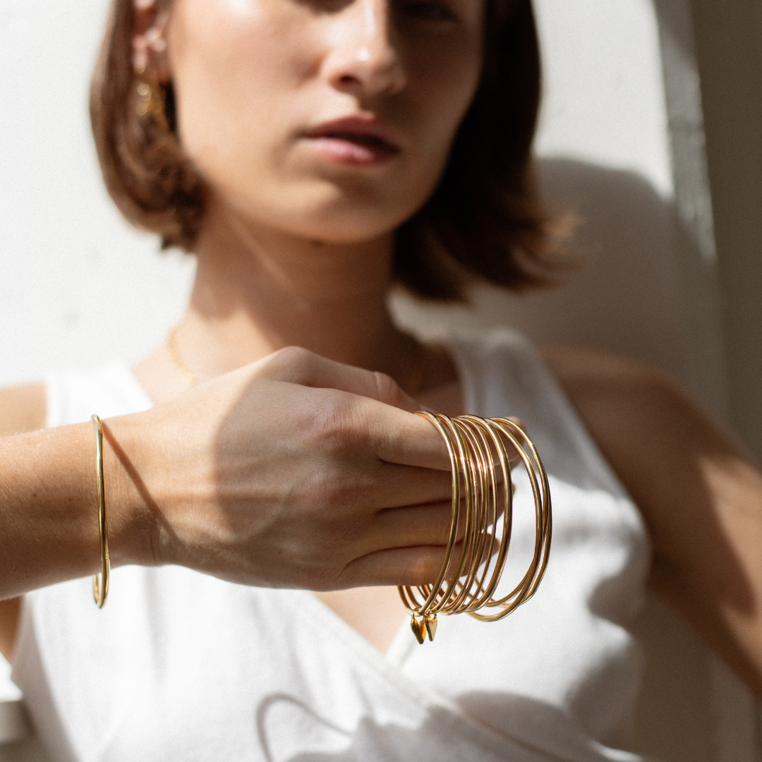 Each bangle is shaped by hand, which means there may be delicate join marks, a beautiful reminder that your piece was crafted slowly and intentionally, just for you.