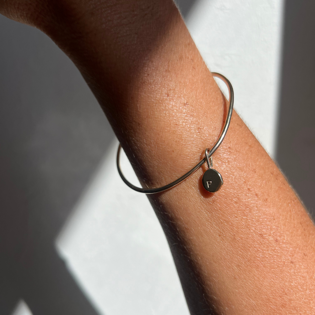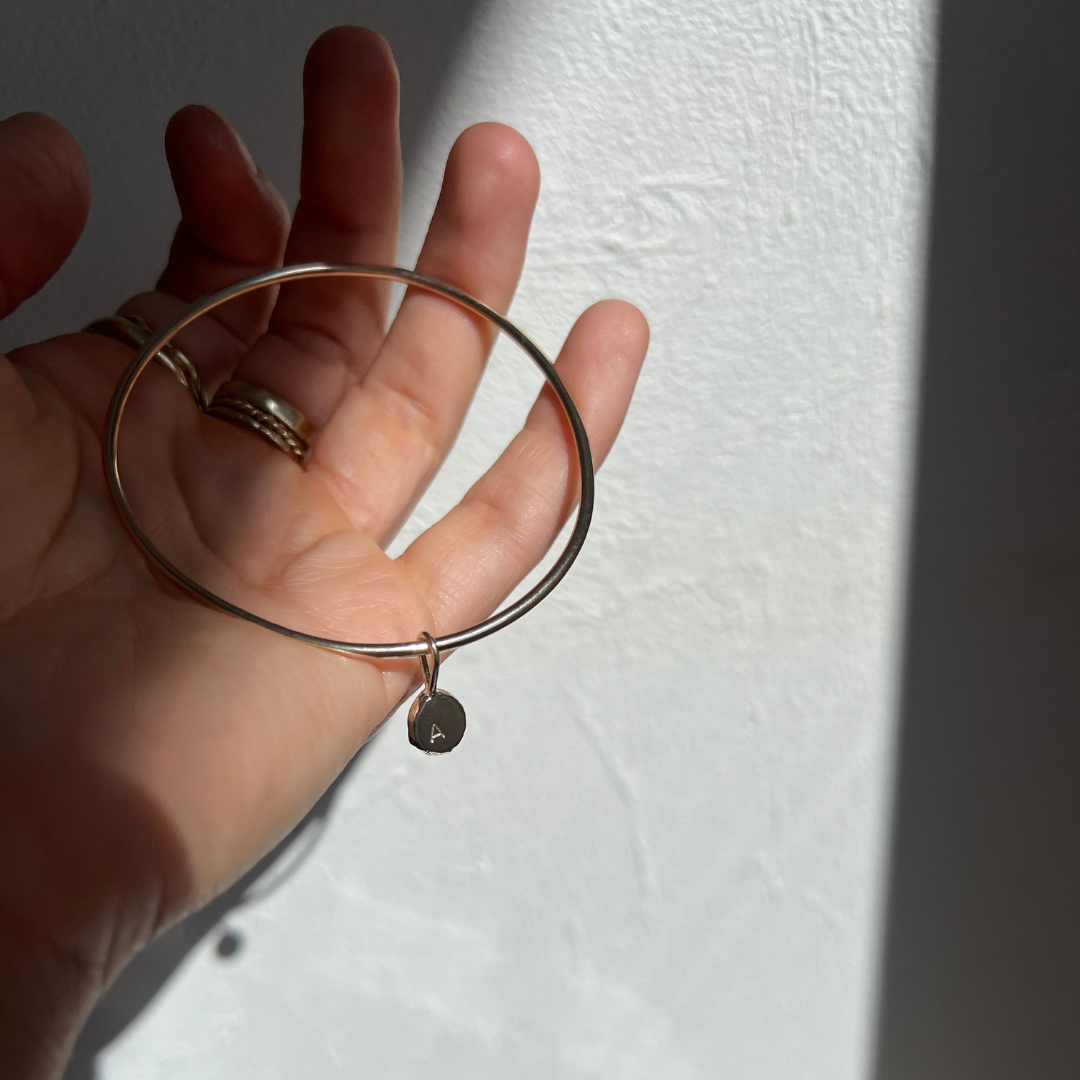 Maya Bangle with Initial Charm - 9ct Gold
