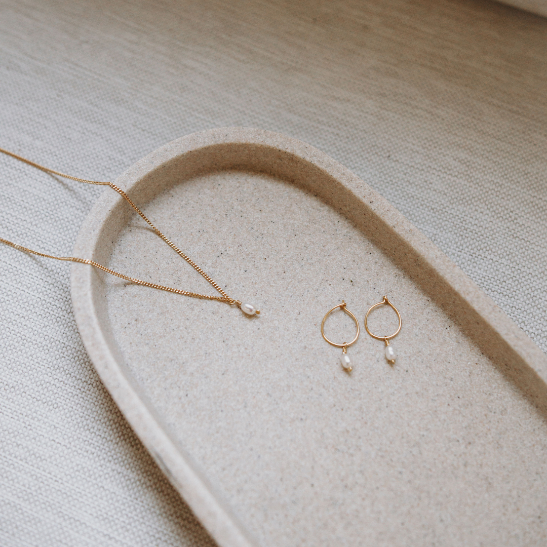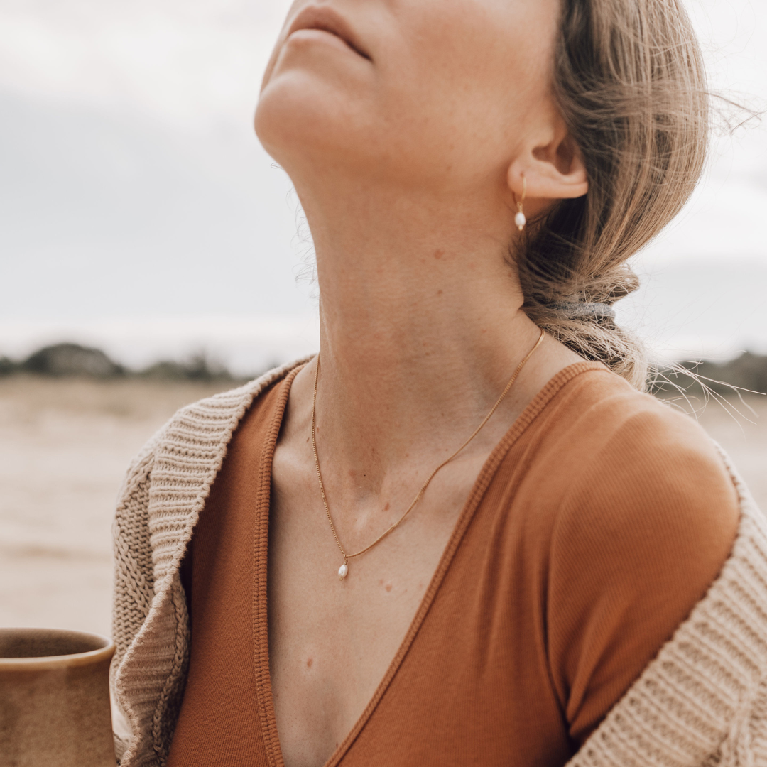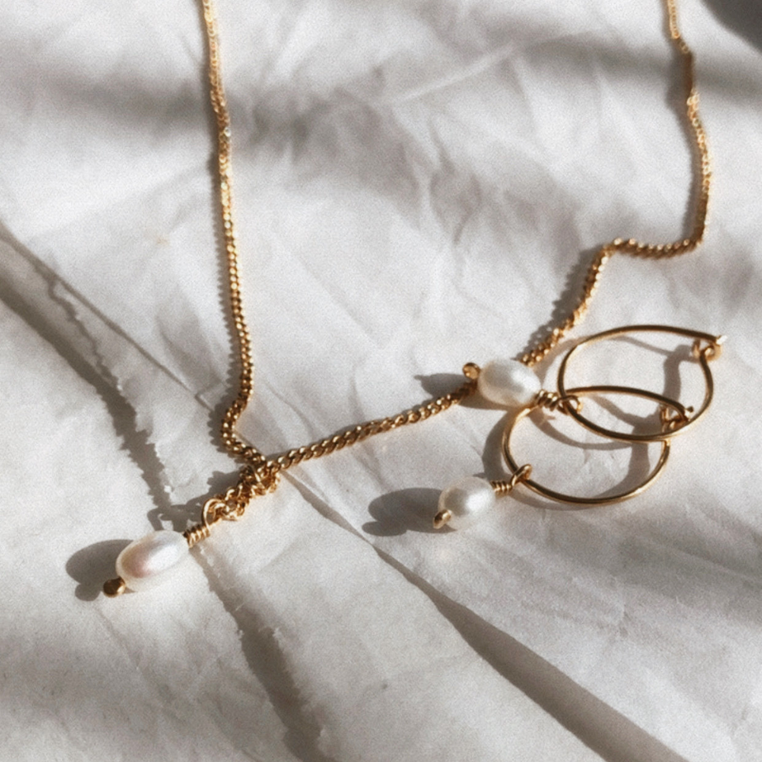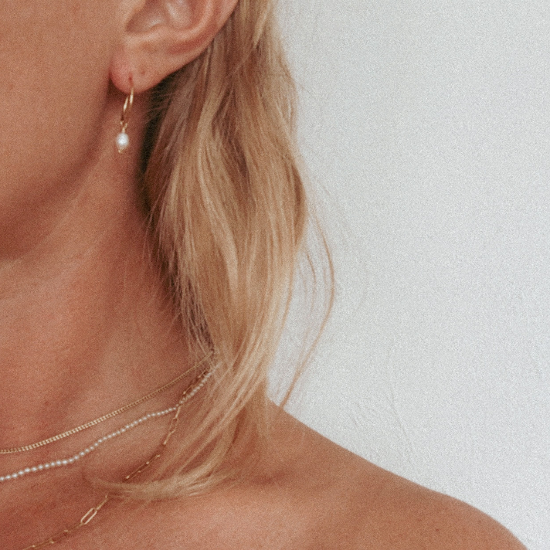 The delicate Ayla Pearl Hoops are handcrafted out of Australian Sterling Silver and 4 microns thick 18ct Gold Vermeil with Freshwater Pearls.