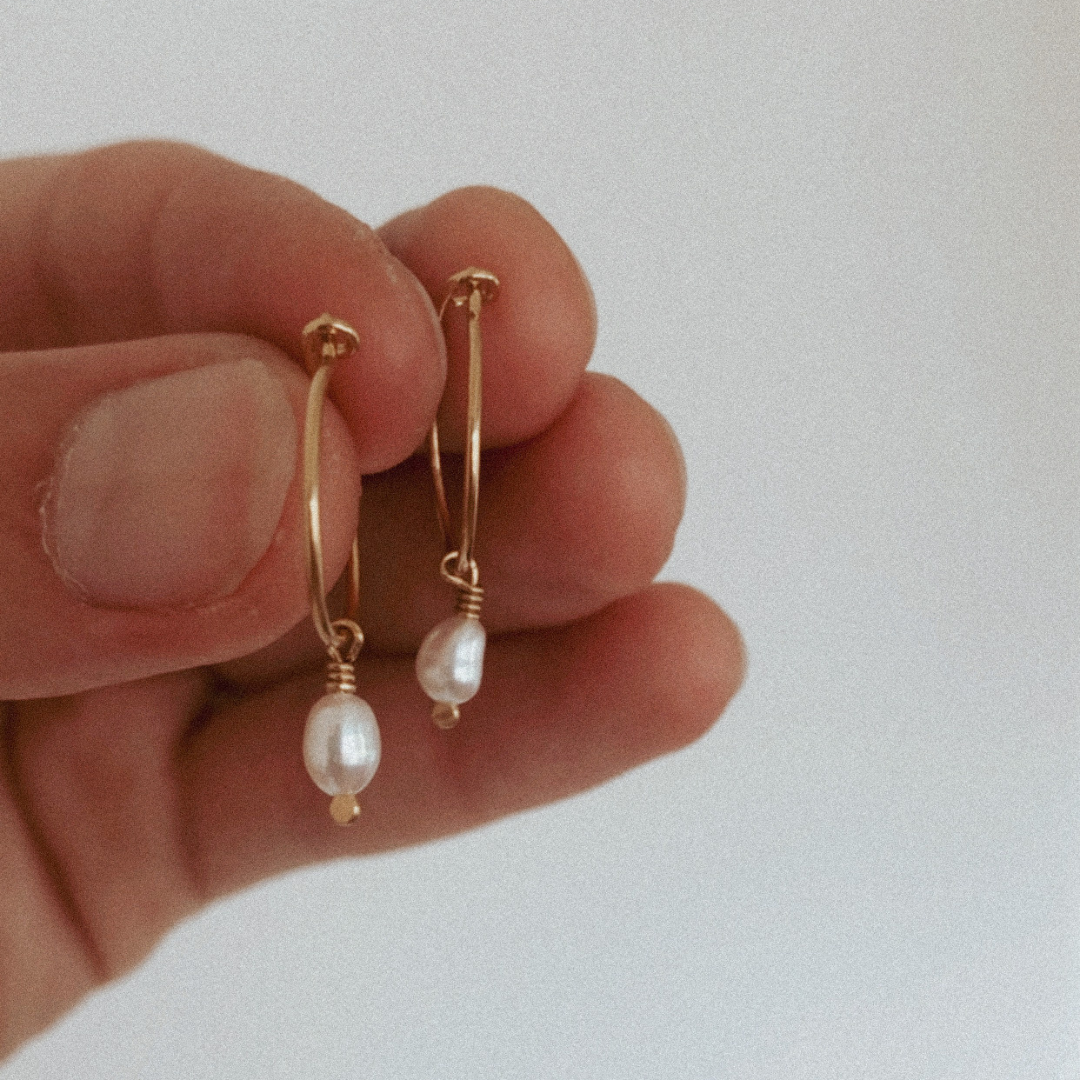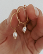 Size - Approx 1.4cm - 1.7cm Hoop + .3mm - .5mm Dainty Pearl Drop. Handmade with carefully selected Freshwater Pearls.