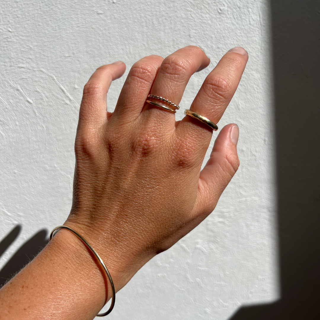 The Dainty Rope Ring is delicately handmade from Recycled 9ct Yellow Gold, offering a timeless design with a soft, twisted texture.