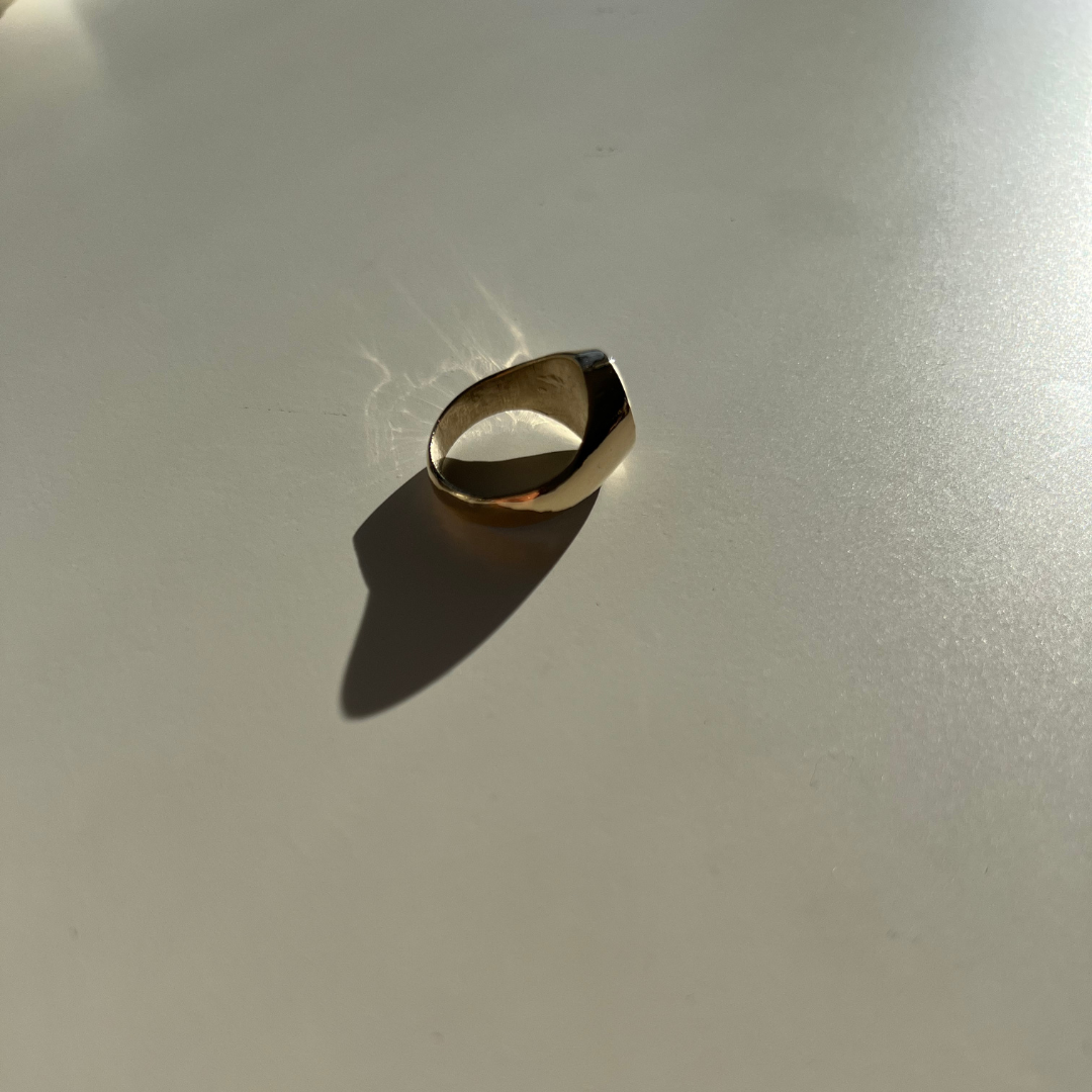 This heavy, heirloom-quality piece is made for everyday wear. Weighing approximately 7.5 to 8 grams, the face of the ring measures around 1cm x 1.2cm.