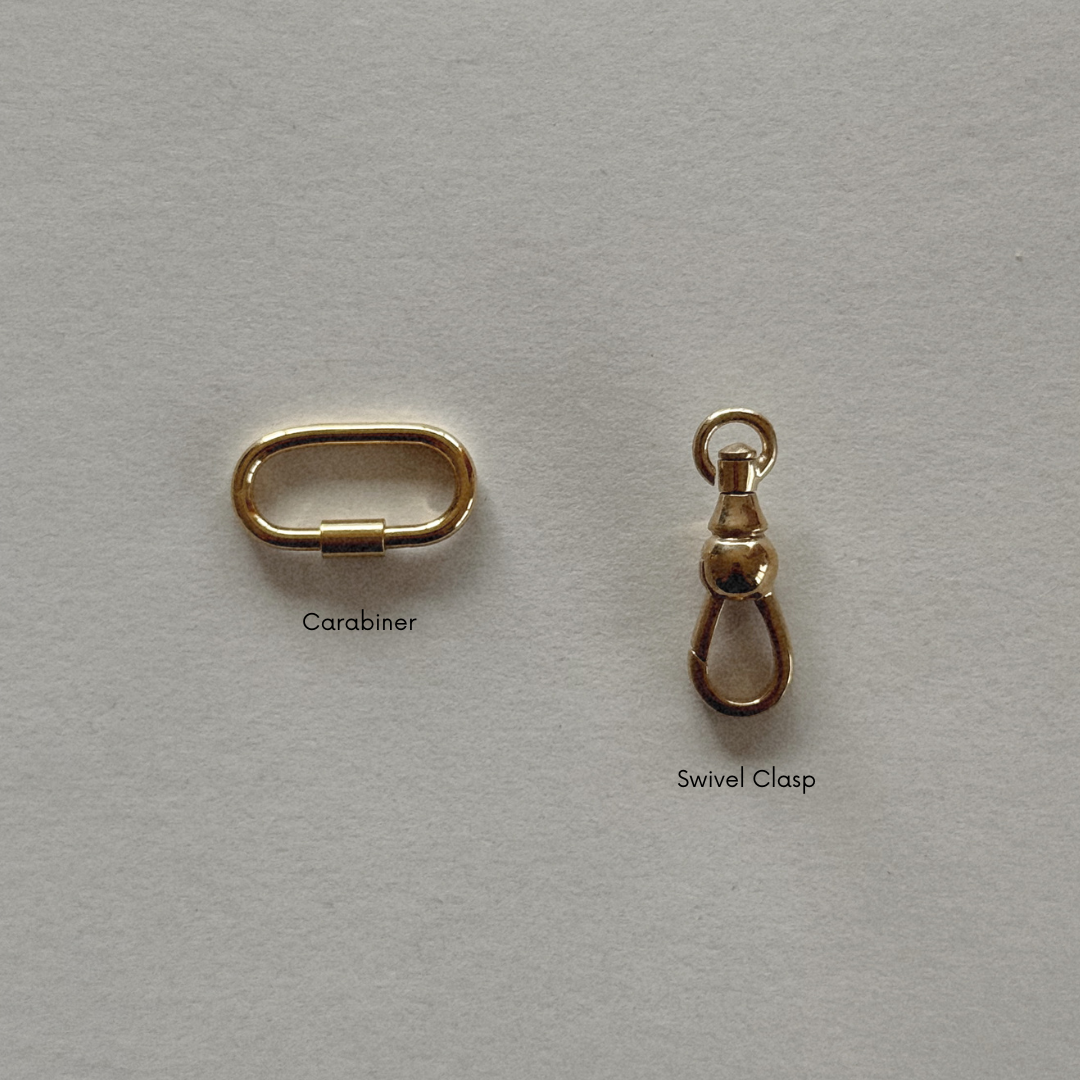 Carabiner Link - A sleek, modern clasp that opens and closes securely. Ideal for changing charms whenever you like.
